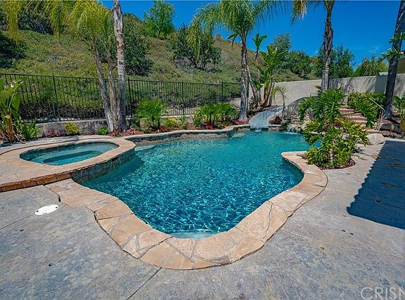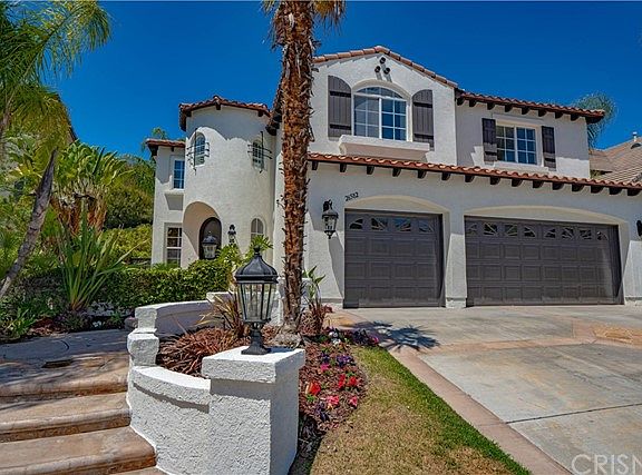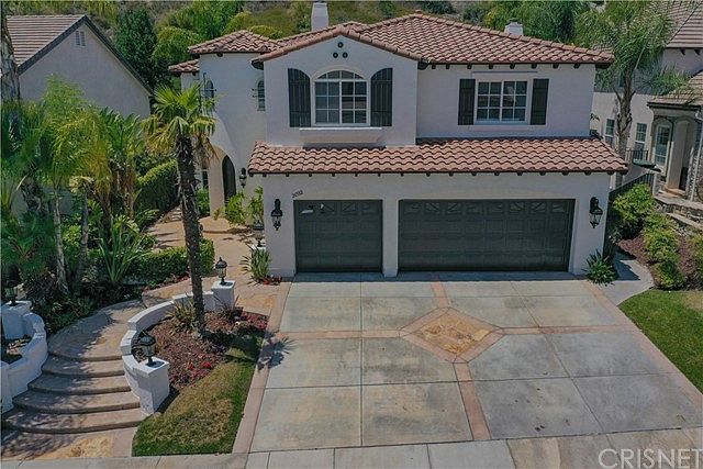 Beautiful Stevenson Ranch Executive Pool Home. Located in a great location with no rear neighbors! This exceptional home offers 4 large bedrooms, 4 bathrooms, large bonus room, & 3 car garage, with 3,779sq.ft. of living space. Enjoy the gorgeous private backyard with pool, spa, outdoor fireplace, & lush landscape. You'll immediately fall in love with this home when you walk up to the beautiful courtyard leading to the front door & enter the elegant foyer to the stunning living room & be in awe as you continue through the home. Once you enter the kitchen you'll be amazed by the large spacious kitchen with Viking appliances, large kitchen island, walk in pantry which opens to wonderful family room with additional light & bright sun room over looking the stunning & beautiful backyard. Next you'll walk upstairs to the spacious bonus room, terrific work station area, & 4 large bedrooms. The exceptional master suite has a private en-suite with dual fireplace, spectacular balcony overlooking the serene backyard along with two large walk-in closets. Master bathroom includes two separate sinks, lovely vanity area with plenty of natural light, separate spa like tub & walk-in shower. Features include new professional exterior & interior paint, plantation shutters, recessed lighting, & large baseboards. Stunning hardscape with stamped concrete & stone trim. Close to Award Winning Schools, Shopping & Easy Freeway Access.