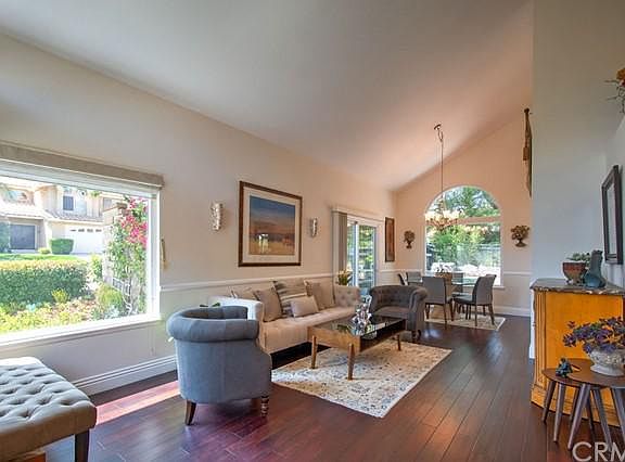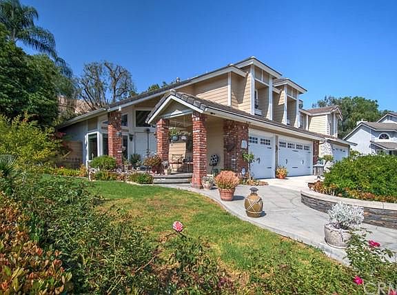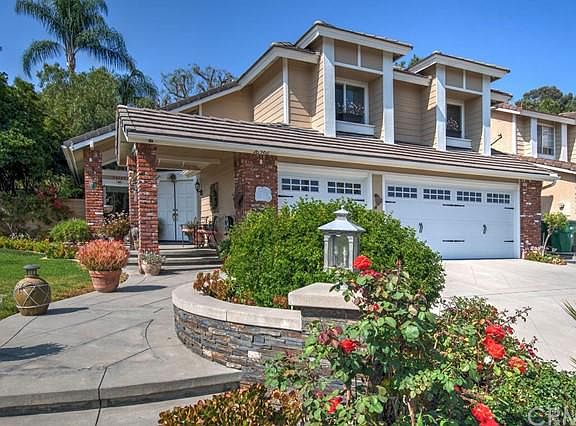 Beautiful corner lot. 4 bedrooms 3 baths, located in the desirable city of Mission Viejo. Lush front yard with professionally designed landscaping leads you to entrance. Double door entry welcomes you to the elegant curved stairway. Light and bright, high ceilings, living room with great view of the backyard with plenty of natural light...one of the highlights of this great home. Entire first floor has laminate, dark mahogany wood flooring, fresh bright paint, plus brand new windows with views to the beautiful and private backyard. Kitchen with Corian countertops, white backsplash, stainless steel appliances, a large walk in pantry and sink facing a pretty bay window looking out to the backyard. Kitchen opens to massive family room with fireplace, custom, wood bookshelves, brand new windows and plenty of space for a breakfast nook. Inside laundry room leads to 3 door garage with lots of storage. Garage doors have recently been replaced with newer garage door openers. All bedroom are located on the second floor. Master bedroom, master bath and master closet are spacious with large window welcoming in backyard views with beautiful trees. There are 3 other bedrooms on the opposite side of the second floor. One of the bedrooms with built in, custom made office cabinets is a perfect setting for home office. Spacious backyard is perfect for entertaining friends and family complete with BBQ, massive countertop, stone fireplace, pizza oven, a charming fountain and lush landscaping with fruit tress creating a picturesque work of art. This home is turn-key and part of Lake Mission Viejo with all its amenities.