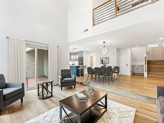 Highly desirable La Mancha Community proudly presents this spectacular highly upgraded home is located in the serene hillside of La Mancha in Mission Viejo. This fully completely remodeled home boasting 3 bedrooms, 2.5 baths and a loft with high ceilings and windows galore bringing in an abundant of natural light into the home for all day brightness. From the moment you step foot into this amazing home, you can tell the sellers are very meticulous from every detail of the interior. The open floor plan concept featuring an inviting living room with fireplace is great for formal entertaining or casual gatherings. From the living room, there is a sliding door leading towards the patio where you can start your day with your breakfast or just your morning coffee. Make your way to the gourmet kitchen with natural stone counter tops, stainless steel appliances, extensive cabinetry and pantry. The gourmet kitchen and oversized island with natural stone tops and built in eating area is perfect for every chef in any household. The kitchen opens wide to the roomy dining area which is great for large gatherings. The first floor also offers a remodeled half bathroom and a laundry room. Heading towards the second is the spacious loft that can be utilized for multi-purposes. Whether it is a home office, a game room or multimedia room, you sure will be thankful to have this extra room for any purpose you may need. The spectacular large Master suite with vaulted ceiling and a private balcony where you can put chairs, relax and read your favorite book for relaxation. Totally remodeled massive master bathroom with a dual vanity and natural stone top then leading to two good size bedrooms with easy access to fully remodeled bathroom. One of the bedrooms has an unbelievably huge storage. Both rooms have sliding doors leading to their balcony. Spacious attached two car garage with remotes and one assigned parking spot easily accessible. The list of upgrades/remodeling is endless. Newer flooring, paint, interior and exterior hardware, recessed LED lighting throughout, fireplace, ceiling fans closet doors, base boards, stairway and loft railings, electrical switches and plugs, most lights are on dimmers, plumbing for water and filtration is done and ready in the garage. Photos are virtually staged.
