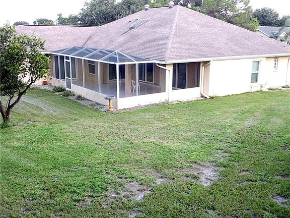Beautiful home situated on private, oversized, cul-de-sac lot in Deep Creek. The home sits on a conservation lot with mature landscaping and fruit trees. Solid wood cabinets and solid surface countertops in the kitchen with an eat in area and a breakfast bar. Home was completely updated in 2004 with new kitchen cabinets, countertops, garage door, carpeting and Roof. Impact windows installed in 2009. Brand new HVAC system installed in December of 2019. Sprinkler system using a well, not city water to save money. Screened in back and front porch. Back screened lanai is extra large (32 x 16) and has ceramic tile flooring and ceiling fans.