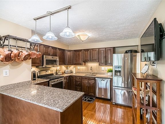 Extra Large End Unit with 3 BR and 3.5 BA is tastefully UPDATED throughout. Light and bright floor plan features newer windows, front door and glass doors (2015). Living room w/gas fireplace, recessed lighting, multiple windows and freshly painted (2021). Gourmet KIT (2015) w/hardwood floors, overlay cabinetry, granite counters, stainless appliances, gas convection oven, microwave, side by side refrig & medallion lighting (2021) KIT opens to DR w/glass doors (2015) to deck, beadboard ceiling (2021) with private views. Work at home in the den w/glass doors to the patio(2015), new carpet (2021) and convenient powder room. Inviting owner's suite features vaulted ceiling with ceiling fan, walk-in closet, updated owner's bath(2015) and vanity (2015). New Furnace & A/C (2009), New Roof (2016) Siding (2012) North Allegheny School District. HOA fees include Community Pool & Clubhouse use.