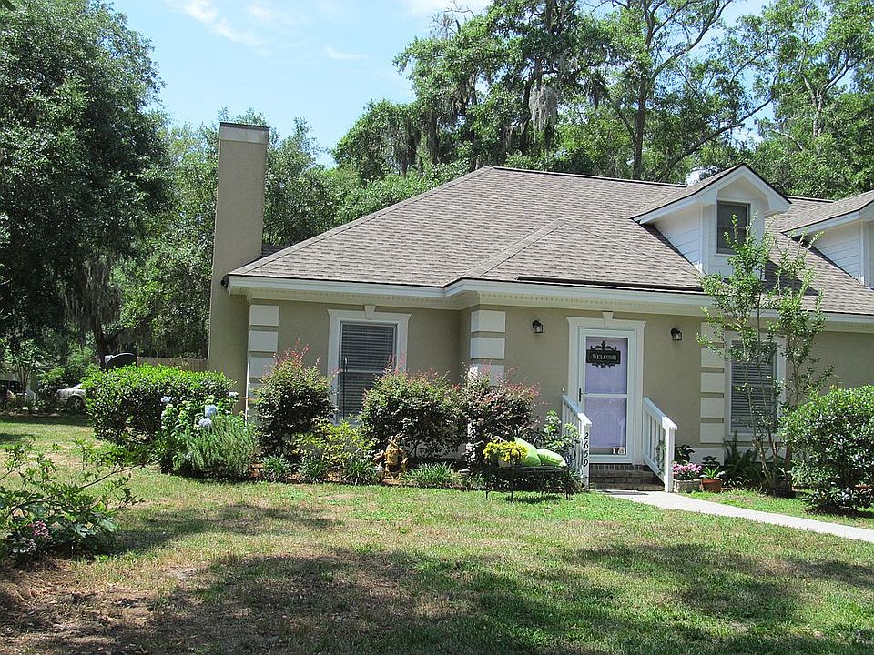 Move in ready one level home in Jericho Woods with loads of updates and beautifully decorated. Open and airy with 9' ceilings. Kitchen has granite counters and white shaker cabinets, New dishwasher and garbage disposal. New LVT flooring in living/dining/kitchen areas. Main bath has beautiful ceramic tile flooring and quartz counter. Hot water heater has been replaced. New lighting throughout with ceiling fans in living and bedrooms. Wood burning fireplace warms and adds ambience in cooler weather. Screened porch is perfect for morning coffee. Gutters have been placed on side and rear of home and on storage shed. Architectural shingle roof less than 4 years old. Heating and air systems less than 4 years old. Maintenance contract on heating and air in effect. Large corner lot extensively landscaped with privacy fence in rear for fur babies or dining out. Fun treehouse for the kiddies. Attic storage. Wonderful neighborhood that backs up to the Spanish Moss trail for your walks. Only 1 mile to Beaufort Memorial Hospital. Extremely low HOA fees only $120 a year. This home has been well maintained, updated, and loved. Call owner at 304 890-0220 to schedule a viewing.