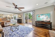 Walk-in closetStylishly updated bathroomsHeated in-ground poolClassic finishesHardscaped patioGleaming hardwood floorsCrown molding