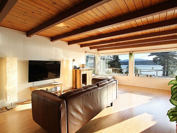 Gooseberry Point Perfection. Well cared for 2bed 2bath delivers dream views from both levels. Tastefully updated with open floor plan offering multiple options and character throughout. Low maintenance landscape insures you'll have time to enjoy sunny BBQs on the deck and rear patio facing Hale's Passage. New: appliances, heat pump, paint, bath fixtures, barn door, subway tile & floor coverings. Carport, easy access to soon-to-be-completed pedestrian path and 1/200th interest in beach reserve
