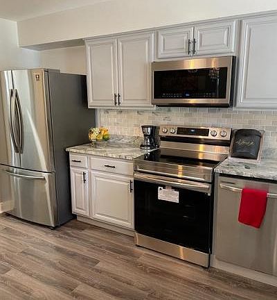 Beautiful Baltimore County Renovated 3 Bedroom , 1.5 Bath, Brick Spacious (End of Group Townhouse) - New kitchen with Samsung stainless steel appliances, Granite Counter Tops, Breakfast Bar, Gleaming Hardwood Floors, New Carpet, Finished Basement with Ikea Storage /Half Bath, Generous size Rooms/ Bedrooms. Dual zoned AC System, Rear 2 Car Parking Pad and 1 Car Garage. Free HSA Home Warranty Incl. per agent details. Don't miss out on the opportunity to call this Townhouse HOME !!!