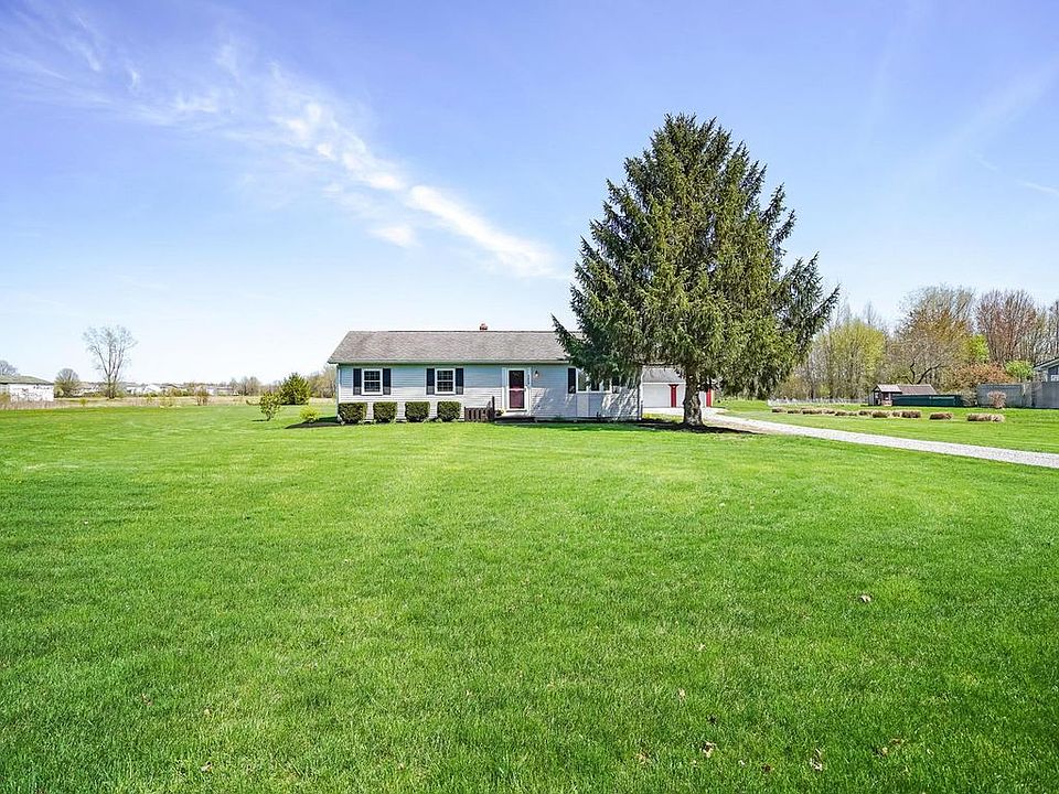 Looking for land within minutes from shops & restaurants? This 1 story home situated on 2 acres has it ALL! From its completely updated open floor plan to the kitchen that features granite countertops, stainless steel appliances, generous sized kitchen island, & a nicely sized pantry. Hardwood floors flow throughout the first floor, brand-new windows & doors were just installed, the master bedroom is large & has a nicely sized ensuite master bathroom. The basement is HUGE & is completely finished with brand new carpet. Outside the large 3 car garage is finished inside with drywall, insulation, & is heated. This could be the perfect workshop & there is also a large shed behind the garage for extra storage. Don't miss out on this amazing property within minutes from Polaris!