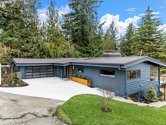 No detail has been overlooked in the exquisite mid-century modern West Hills remodel. This home offers a bright and open living and dining area with stunning views of Mt. Adams. A striking three-sided fireplace adds warmth and character, seamlessly transitioning into the gourmet kitchen. Equipped with top-tier appliances, including a 48-inch range and custom-paneled refrigerator and dishwasher, this kitchen is a chef’s dream. Featuring two spacious bedrooms and two beautifully updated bathrooms on the main floor, the reimagined primary suite boasts a luxurious double-headed shower, dual sinks, and a generous soaking tub. The lower level is equally impressive with a large additional living area, two more bedrooms, an office space, newly renovated bathroom and spacious utility room. Completed with an attached 2 car garage, driveway parking, and flat yard space, this house is hard to beat. [Home Energy Score = 4. HES Report at https://rpt.greenbuildingregistry.com/hes/OR10204324]