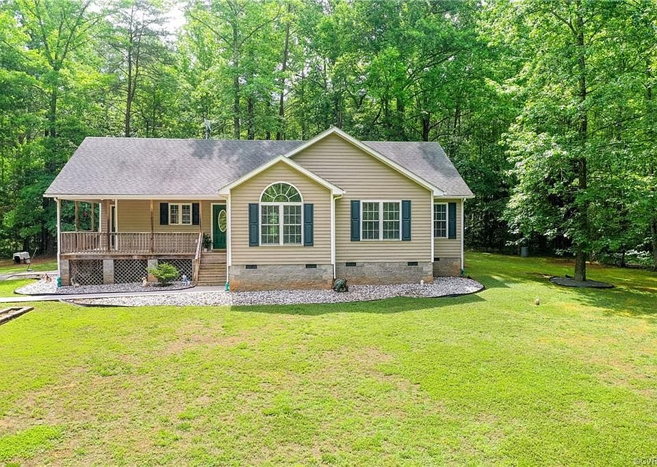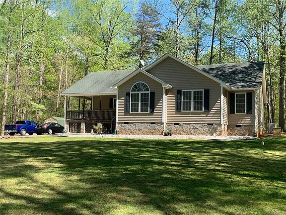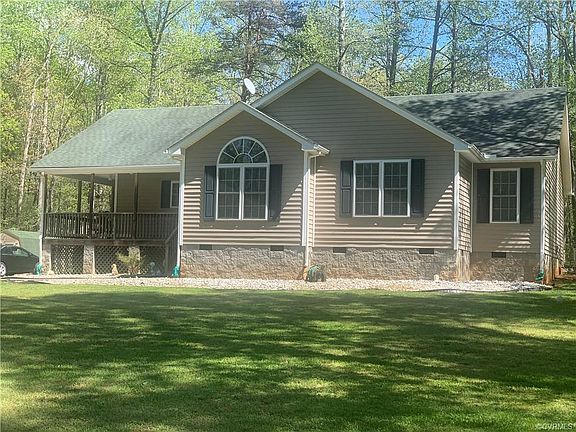 You are going to love this charming transitional rancher that will give you the best of privacy and convenience. The spacious rancher offers a large open great room with gas fireplace connected to a large dining area wth lots of natural lighting provided by a large bay window. Enjoy hardwood floors, cathedral ceilings, and multiple ceiling fans throughout the home. Enormous kitchen w/ raised bar. Huge master bedroom with 2 walk in closets, tub & separate shower. Extra large 2nd & 3rd bedrooms. Home includes on demand propane generator, 50 Gallon water heater, Vinyl siding, and thermal windows. Beautiful 2.338 acre private yard with massive space for fun and entertainment. Large wrap around porch. Large deck; 10' x 20' shed conveys as-is. Located near Short Pump, Georges Tavern, half way between Richmond and Charlottesville. The best of one story, country living with modern conveniences.