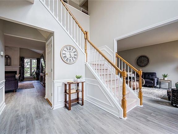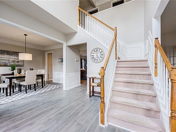 Welcome home to this spacious, modern home in a beautiful swim/tennis community. The open-concept floorplan, high ceilings, oversized windows and finished basement make this home a must see! This home boasts tons of natural light and has an amazing amount of space to suit every family's needs. Modern updates include new flooring, fresh interior paint, updated appliances in the kitchen, new lighting and window treatments throughout. Upon entering the home, you are welcomed to the two-story grand foyer, which opens to the dining room and sitting room. The sitting room opens to a large private office with built-in bookshelves that overlooks the backyard. The dining area and foyer open to the spacious living room, which is oversized, with high ceilings and a gas fireplace. The dine-in kitchen overlooks the spacious living room and opens out to the newly rebuilt deck. Upstairs, the large primary bedroom boasts a huge bathroom with separate bath & shower, private toilet and walk-in closet. There are three additional bedrooms and another bathroom upstairs, along with a separate laundry room. The basement is a fantastic area for recreation or as to use as an in-law suite. It includes a bedroom, living room, office, workshop and exercise room. The community of Riverbrooke boasts 4 tennis courts, a pool, and a playground that are included in the HOA.