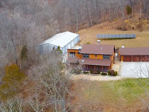 WOWZA! 5-acre compound (w/ addl 10 acres avail.)! PREPPERS DREAM - sustainable living - safety, you name it! This property has a ton of redundant systems & special features. 3 beds, 2 baths. Cozy wood beams, plaster walls, vaults, walk ins, etc. All kitchen appliances (up & downstairs canning kitchen) are 5ish years young. Front porch has the BEST POSSILE VIEWS & SUNSETS w/2 large porch swings for "sip and swing" evenings. Glass screened in back porch, large saltwater pool, separate hot tub room w/a view & outdoor access bathroom. 3 car detached garage + 40 x 60 shed w/concrete floor, 3 overhead doors, heat & water. Redundant systems = Solar (average under $100 per month) + Ameren + 17KW whole house generator. Public water + disconnected cisterns + heavy flow spring. Wood burning fireplace w/blowers + whole house wood furnace + brand new propane HVAC. 2–500 gallon propane tanks, 2–3000-gallon septic tanks. TONS OF PRIVACY & NOT IN A SUBDIVSION! Great Location just off Hanover Road.