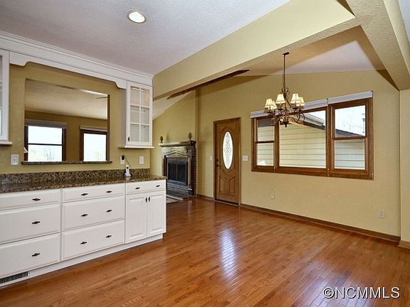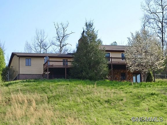 Perched high for those must have views of the Black Mountains! Enjoy main level living plus a full finished basement and separate apartment with its own utilities! Fiber cement exterior and the open floorplan is perfect with 2 fireplaces - gas logs in the living room for that "no mess" comfort, and wood burning in the den where wood is easy access from the lower porch. Reclaimed beams and mantle were salvaged from the original farmhouse. The huge kitchen is just begging for an island to gather round. Not enough? Check out the 50'x30' barn, raised beds for gardening, fenced pasture for animals and dogs. The detached garage apartment is perfect for rental income or Mother in law suite and has a separate meter for electric.