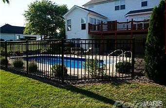 STUNNING 2-sty, 3-car on lvl lot w/ in-ground pool & pro landscaping! Inside you're greeted by a 2-sty entry foyer w/ beautiful wood flrs & encased doorways to the sep liv rm & din rm. 9'ceilings are found throughout the main flr & an elegant staircase T's from the foyer to the kitchen. The family rm has a wd burning fp & is expanded w/ 5-window bay overlooking the yard & pool! The kit is a chefs dream with a 9'x4' center island w/ brkfst bar overhang & gas top stove. 42" cabs, wd flrs, b/i oven & windows galore. Kitchen also features newer stainless steel appls & a huge hearth rm w/ walls of windows & the perfect spot for your big screen tv! Wood flrs flow throughout the kit, brkfst rm & hearth rm. The main flr laundry is large w/ a window & closet. All bdrms & bthrms are spacious & w/ neutral decor. The deck is the finishing touch w/ wrought iron accents & huge patio below. The w/o lower lvl has a deep pour, full bath & add windows. New carpet and paint throughout. Brokered And Advertised By: St. Louis Area Properties, LLC Listing Agent: Eric Wittman