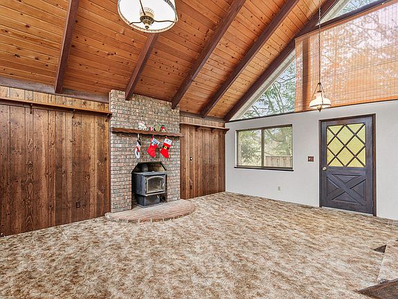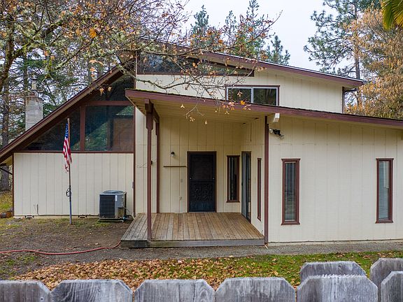Private setting, close to town and move in ready. 1904 Sq ft Chalet style house, 3-bedroom 2 baths on 1.58 acres. The Master bedroom and a bath are downstairs, and 2 spacious bedrooms and bath upstairs with an open loft area. Lots of storage areas. Heat pump, air, and a certified wood stove in living area. Chimney just cleaned, new wall oven, new dishwasher. Spacious 30 x 40 detached garage/shop, large garden area. Plenty of parking. School District 7. Back on Market, no fault of home or property.