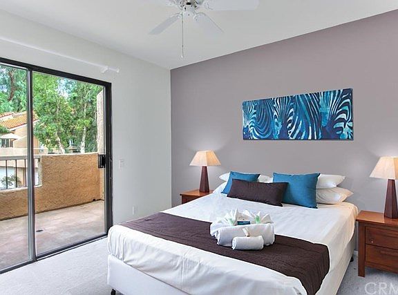 5-STAR LOCATION IN SIZE AND VALUE! This picture perfect La Mancha townhouse has 3 bedroom, 2.5 baths w/a 2 car attached garage at the back of the cul-de-sac with views of the greenbelt. Spacious floor plan w/cathedral ceilings in the large living room & dining room. Neutral laminate flooring through out the first level & newer carpet upstairs. Gas or wood burning fireplace in the living room. Kitchen features recessed lighting on a dimmer, newer appliances & includes a new stainless steel refrigerator. Dual pained sliding glass doors from the large eat-in kitchen & living room out to the serene, private back patio. Newer Washer & Dryer included in laundry room. Super private master suite is spacious with vaulted ceilings an entire mirrored wall of closet space & master bath with his & her vanity. Large private patio off of the master backs to the greenbelt. Step up roman tub/shower in the master. Both of the secondary bedrooms are bright & spacious with sliders that lead out to a shared sun deck. Sensational community nestled in the trees, close to the golf course. Enjoy the serenity of the walking paths, greenbelts, 2 community pool areas and dog friendly parks. You could not ask for a more ideal location in So. OC! VA & FHA Approved!