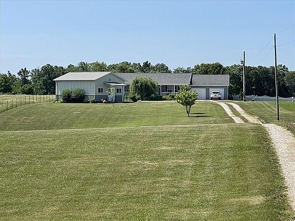 This home & property check all the boxes! Located only a few miles from Macon on 7 impeccably manicured acres m/l, this lovely ranch home has the perfect floor plan with its open concept featuring 3 bedrooms & 2 baths. Well maintained is an understatement. The updates have been many. A few are: New HVAC 2022, hardwood floors throughout most of the home, newer kitchen appliance with the stove new 2022. A large covered front porch and back patio extend the living & entertaining space with amazing views! Storage is ample in the generous 2 car attached garage that features a storm shelter large enough for 8. More storage options in the 40x24 Morton building with a designated 24x9 finished shop area and a 24x31 storage featuring concrete flooring & electric roll door.