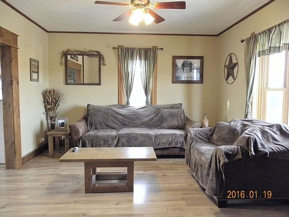 The work is done! Very cute. This is the edge of town home you have been wishing for. More than a 1/2 acre surrounded by corn fields. Updates throughout! Pretty eat in kitchen with Oak cabinets, large bath with double sinks, Main floor laundry. Huge garage with air compressors and heater. Furnace and water heater new in 2015! Subject to seller securing home of choice.