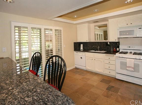 METICULOUSLY MAINTAINED TOWNHOME NESTLED IN THE CORNER OF A QUIET CUL-DE-SAC FILLED WITH TREES. This end unit features: 3 bedrooms, 2.5 bathrooms, vinyl dual pane windows, and an updated kitchen with slate flooring and granite counters. The main floor boasts plantation shutters; natural wood floors in the dining room with an elegant chandelier; and carpet in the living room with a beautiful travertine fireplace. The home has 3 separate patios. By the front door is a reserved parking space plus there is a 2-car garage with built in cabinets and an easy-to-clean epoxy floor. This property is close to a community pool and a serene path bordering the golf course--which is perfect for a stellar view of Independence Day fireworks. Welcome home!