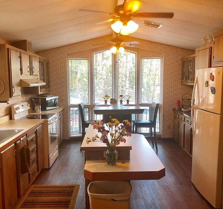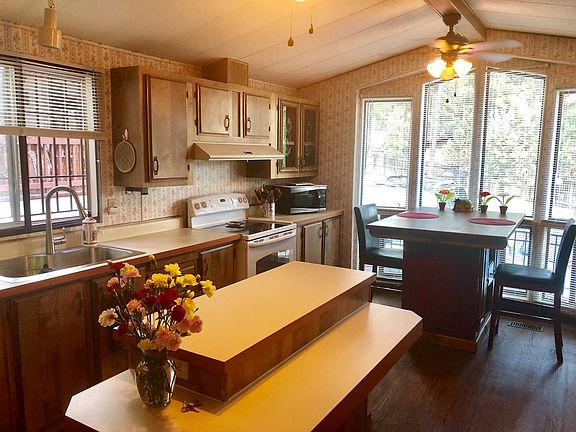 1984 "Gold" Manuf. 2/1 Home in 50+ Mobile Home Park in Ruidoso. (MUST be 50 years or older to reside in the park).Conveniently located: walking distance to Links Golf Course, Public Library, 3 mile Walking Track, and Restaurants. Lovely Kitchen with large bay windows to view beautiful pine trees, breakfast bar, newer wood laminate flooring in kitchen, bath, and laundry and very nice carpet in Living Area and Bedrooms; Covered deck, Separate Workshop/Storage Building,and 2 parking spaces. $360/month covers Space Rent, Water/Sewer/Trash. Park provides "Rec-Room"&Weekly Pot-Luck Dinners for Residents. Mobile Home Sale ONLY, NO LAND conveys with sale. Possible to buy Home only and re-locate-ask!