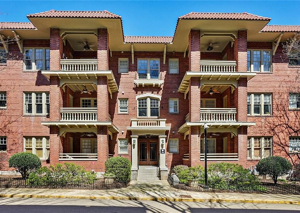 This exceptional designer showcase condo is prominently located in the highly coveted historic Wilburn House building on Piedmont Park. Designed at the turn of the last century by one of Atlanta's most renowned architects, Lelia Ross Wilburn. This is a fantastic opportunity to own a piece of Atlanta's history! Upon arriving at the condo, you're welcomed by an American Craftsman door adorned with vintage stained glass windows and authentic hardwoods. Throughout this charming condo you'll discover distinctive character & architectural features. The light-drenched living room showcases a modern drop chandelier complemented by a coffered ceiling and timeless crown molding. Accessible from the living area, you'll find your very own private outdoor covered balcony, adding to the allure of the space. Upon entering the bedroom, your attention will be captivated by the flood of natural light illuminating the space, the elegant 5-panel shaker doors, the classic crown molding adorning the ceiling, and the walk-in closet. In the spa-inspired bathroom, an art deco penny-tiled floor sets the stage, complemented by a custom pendant light. The gracefully tiled tub and shower combination provides a refined and inviting bathing experience. The dining area effortlessly transitions into the chef’s kitchen, establishing a harmonious and inviting space for dining. The kitchen boasts designer cabinets and brand-new stainless steel appliances sure to inspire your culinary endeavors. Located in the heart of Midtown, residents relish in easy access to numerous attractions. Abundant amenities await, including a residents' gate situated within the captivating central courtyard, providing direct access to Piedmont Park. Enjoy a fitness center, a terrace offering picturesque skyline views, a community room, gated covered parking, and on-site property management. The monthly HOA fee covers all utilities except electric, with the added benefit of Google Fiber availability & EV Charging In Secure Garage. From the Atlanta Botanical Gardens to Colony Square, the vibrant Arts District, and the lively Saturday Green Market, there's always something to explore. All your needs are conveniently within reach, from the BeltLine to Georgia Tech, Trader Joe's, Ponce City Market, the Southeast's largest Whole Foods, Politan Row at Colony Square, and a wealth of dining and entertainment options.
