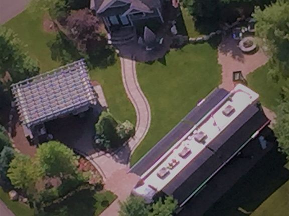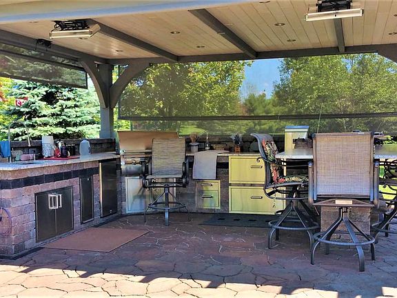 Live your dream in Hearthside Grove at 4768 Shadowood Drive on a 10,532 sq. ft., private, north facing corner lot. This exposure provides enjoyable afternoon shade on passenger/awning side. From the coach driver side to the west, is a pond with lit fountain. Under an oversized, rubber roofed pergola, enjoy entertaining with a fully equipped outdoor kitchen, including a 2-burner natural gas cooktop, 36" Fire Magic grill w/searing burner. Refrigerator, TV, Vision Komodo Smoker/cooker, many enclosed stainless steel cabinets/drawers. A Blanco granite oversized sink/disposal, on demand water heater and a hands-free trash receptacle. A ceiling fan and in-ceiling heaters allow you to enjoy your outdoor time. The four sides of the pergola are equipped with motorized roll-down shades with remote to help keep the elements out and stay comfy inside. A granite counter and table is surrounded by Tropitone bar height chairs. The guest house - bungalow offers a sleeper sofa, recliner, Smart TV, efficient A/C-Heat unit, recessed lighting, ceiling fan, and ladder to the loft. Kitchen amenities: Beautiful cabinetry, Blanco sink, built-in Bosch microwave and Bosch wall oven. The wood-look floor tile cleans up easily! The basement is where you'll find the water heater, storage space (for bikes and supplies), and a water softener which supplies soft water to the guest house, pergola and your coach. Relax in the comfy chairs around the paver gas fire pit with family and friends. Shade is provided by an oversized articulating umbrella. The professionally designed landscape includes in-ground irrigation and evening lighting that highlights the gorgeous colors in flowers, shrubbery plantings, and mature native trees. The large center greenspace can be a great place to play frisbee, corn hole, or other fun lawn games. The mature evergreens afford privacy while still welcoming friends to stop by for a cup of coffee or glass of wine!