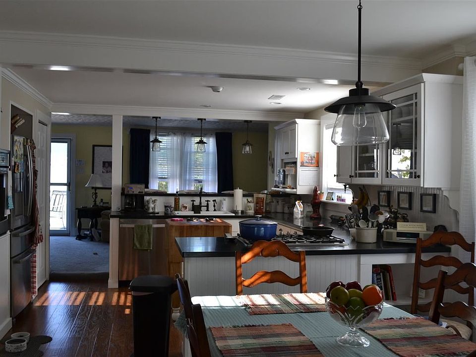 Located just 2 blocks to the beach and 1 block to the bay! This very large home offers lots of potential for island living. Two bedrooms and full bath on first floor and two bedrooms and full bath on the second. Loads of living space with an enclosed front porch, living room, family room and open kitchen. Kitchen is brand new with solid surfacing tops and stainless steel appliances. Bathrooms are remodeled as well with custom features. All new flooring throughout home. New heat, central air and instant hot water heater with warranties still in place. Nice rear deck for entertaining and grilling. Detached garage for storage as well. The heated crawl is very large with 7 ft ceilings. It's perfect for storage and offers a workshop area. Sellers are related to the listing agent.