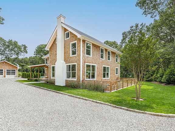 Move right into this designer-furnished, 2024-built residence-completely finished and "tooth brush" ready for immediate enjoyment. Set on a private .55 acre flag lot 240 feet off Accabonac Road, the home offers exceptional privacy while remaining just minutes from both East Hampton and Amagansett Villages, delivering the perfect balance of convenience and quiet retreat. "Builders own" 2024 contruction, 266 Accabonac blends classic Hamptons style with state of the art mechanicals and amentities. Structural insulated panel construction, trimless lighting and vents, shadow-gap details, and smart fixtures create a clean, modern aesthetic with superior energy efficiency and longevity. Every surface and system reflects custom-level quality rather than a standard spec approach. The outdoor setting is centered on an oversized saltwater gunite pool with an independent spa, surrounded by a generous blue-stone patio and mahogany decking. Separate pool and spa mechanicals housed in the detached two-car garage allow for extended seasonal use, even year-round spa enjoyment, all controlled through smart technology. Inside, the layout is bright, open, and made for modern living. A double-height entry leads to an expansive kitchen, dining, and living area anchored by a gas fireplace and walls of Pella windows. The main level includes a private en suite guest bedroom with its own entrance and a convenient cabana bath to the deck. Upstairs are three additional en suites, including a serene primary with a marble bath, double shower, and dual vanities, plus a full laundry room and easy access to a high-ceiling attic for exceptional storage. The finished lower level boasts abundant natural light with 9-foot ceilings and sliders opening to a sunken patio. Here you'll find a fifth en suite bedroom, a large recreation space, and a second laundry room (currently an office)-perfect for guests, media, or fitness. Designer furnished and truly move-in ready, this home offers custom-level craftsmanship, prime East Hampton location, and rare flag-lot privacy. A turnkey opportunity to step into the Hamptons lifestyle.