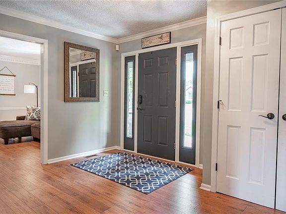 - Interior: Ceiling Raised, Hardwood Floors, Walk In Closet, Attic Pull Down Stairs, Ceiling Tray, Window Bay Bow