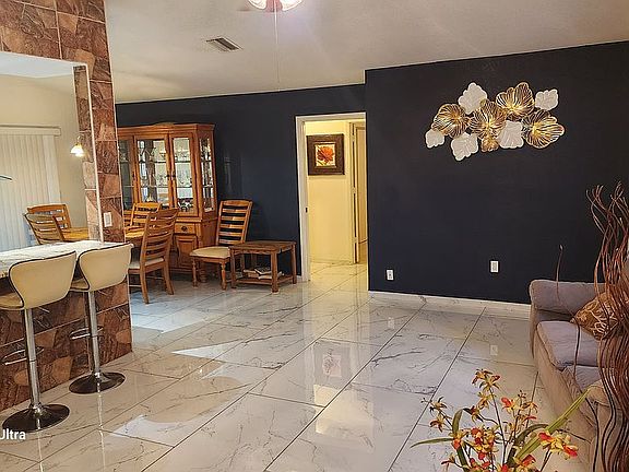 beautiful home. functional kitchen. The 3 bedrooms are very generous in size, with large cllosets. The large master bedroom has a good size walk-in closet and private bath. The master bath needs to be updated. Kitchen, Master bedroom and 3rd bedroom have sliders leading to lanai. Separate laundry room. Water heater was replaced in 2018. A/C is serviced under yearly contract, coil replaced in April 2020.