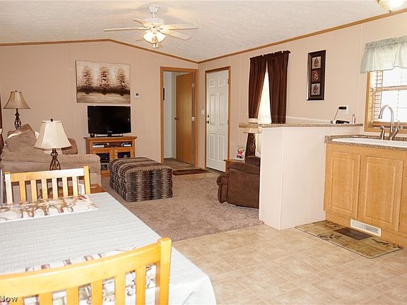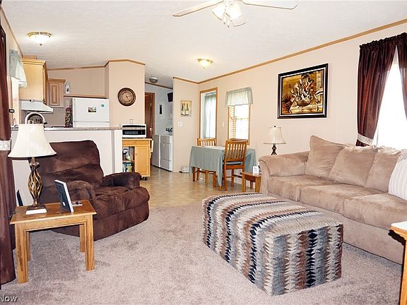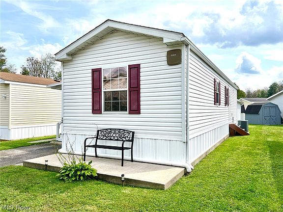 Better than NEW, meticulously well kept, 686 square foot Skyline single-wide mobile home is for sale in the lovely Mapleview Mobile Home Manor. This 2 Bedroom, 1 Bath, 1 Shed property has clean-white vinyl siding and skirting. This particular owner's updates include NEW blinds '21; shutters '16; newer hot water heater '15; and air conditioning '08. Pull up in the drive and notice the newer light post '20 that was installed to brighten your evenings and add extra safety and security. Enjoy the beautiful, low maintenance, covered white Patio with friends and family. Enter into the spacious, carpeted Living Room with NEW sheers '22 covering the windows. The Living Room opens up to the Kitchen and makes the Home feel much larger. The Kitchen has gorgeous newer neutral granite counter tops, sink and faucet '20. The Owner's Bedroom is in the front and overlooks the green yards of nearby homes. The Second Bedroom has NEW carpeting '22. The Bathroom is completely updated '20. Washer & Dryer wi