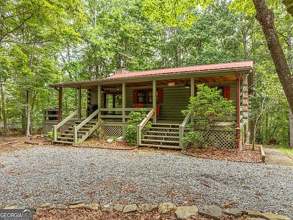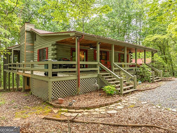 Rustic Mountain Retreat Just Minutes from Blue Ridge Attractions! Welcome to this cozy and spacious 3-bedroom, 2-bath cabin nestled in a prime location just minutes from Downtown Blue Ridge, the Toccoa River, Aska Adventure Area, and Lake Blue Ridge! With timeless tongue-and-groove woodwork throughout and a stunning natural wood-burning rock fireplace as the heart of the home, this rustic retreat blends classic charm with comfort. The main level features an open-concept family and dining area that's perfect for entertaining, with the kitchen tucked just off the dining space for easy flow and functionality. Two bedrooms and a full bath are located on the main level, while the lower level includes a third bedroom and full bath, plus a spacious flex area ideal for a game room, lounge, or future finished space to make it your own. A spiral staircase connects the levels, adding to the home's unique character. Outside, enjoy a 3/4 wrap-around porch with a screened-in section off the back perfect for taking in the peaceful surroundings. A circular driveway and carport provide ample parking, and the front yard already features a touch of landscaping. Whether you're looking for a full-time home, a weekend escape, or a fantastic short-term rental opportunity, this cabin has the potential and location to check all the boxes. Don't miss your chance to enjoy mountain living at its best!