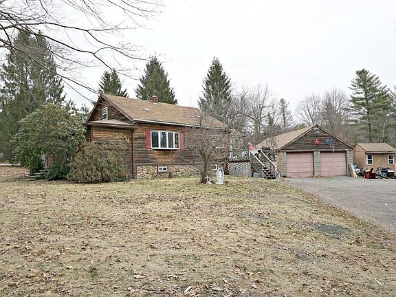 Realistic Buyers only please. Please read listing details. Sold AS-IS; 2-3 BR Cape on 20 + Acres! Buyer responsible for own due diligence as to permitted usage of acreage! Includes amazing 5-6 car garage (tandem spaces) with walk up storage. House has character with main floor cathedral Living Room, Dining Room with hardwoods, spacious eat-in Kitchen and cathedral Entry. First floor Master Bedroom, 2nd Bedroom on main floor with sliders to unfinished cathedral addition, 3rd BR is walk up semi-finished attic. It is currently occupied. Needs Cash or rehab type loan qualified Buyer. Buyer needs to know failed Title V, IG pool needs liner, apron work and house needs interior finish. Brook flows through property and has farm pond on main property. Includes 20 Acres with wetlands behind house and barn. Parcel entry to 20 Acre parcel runs through pool. Being sold as is with Buyer responsible for any required inspection for closing.