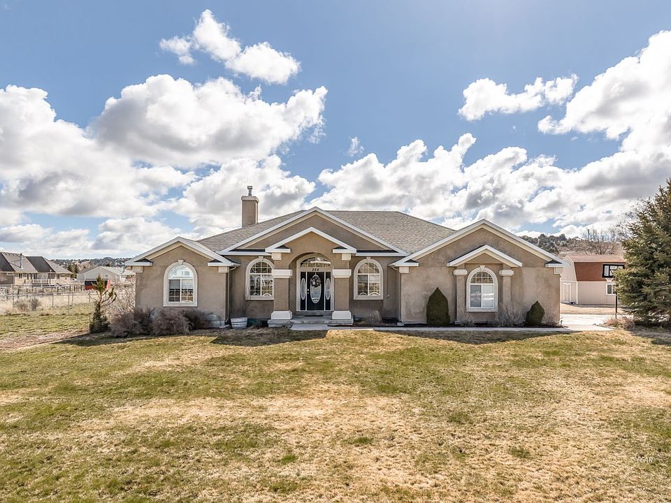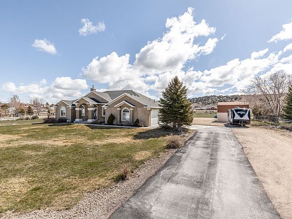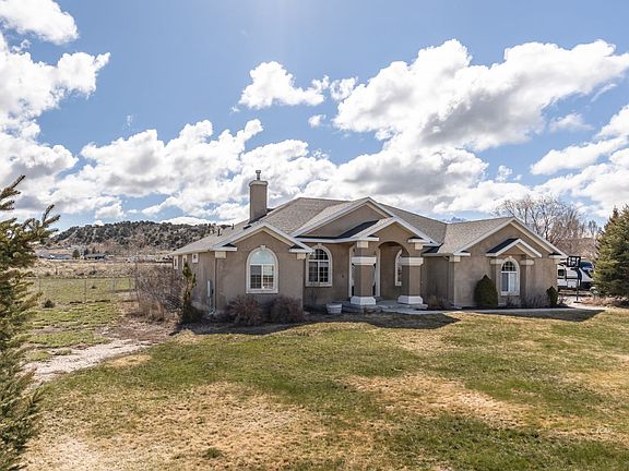 This stunning, custom (previously contractor-owned and built) home is conveniently and centrally located in the Marina Hills neighborhood of Spring Creek, which is minutes to the Spring Creek Golf Course and marina. It offers majestic views of the Ruby Mountains with the iconic Ruby Dome towering in the background. Upon approaching, you're sure to appreciate the beautiful stucco siding, a lovely white fence and mature landscaping that includes large trees, creating striking curb appeal not often found. The grand and elegant entrance continues to welcome you as you are led into a spacious and inviting living area. The extra-large main bedroom and bathroom has a walk-in closet and is the perfect place to unwind or get ready for the day. You'll also have a backyard that creates the ideal space for hosting your guests and highlighting those spectacular mountain views, and with a covered porch, plenty of grass and an in-ground trampoline, the possibilities are endless! Included in this home is a very large storage shed, murphy bed and refrigerator that will stay with the new owners. No need to worry about propane either, this home was recently converted to natural gas.