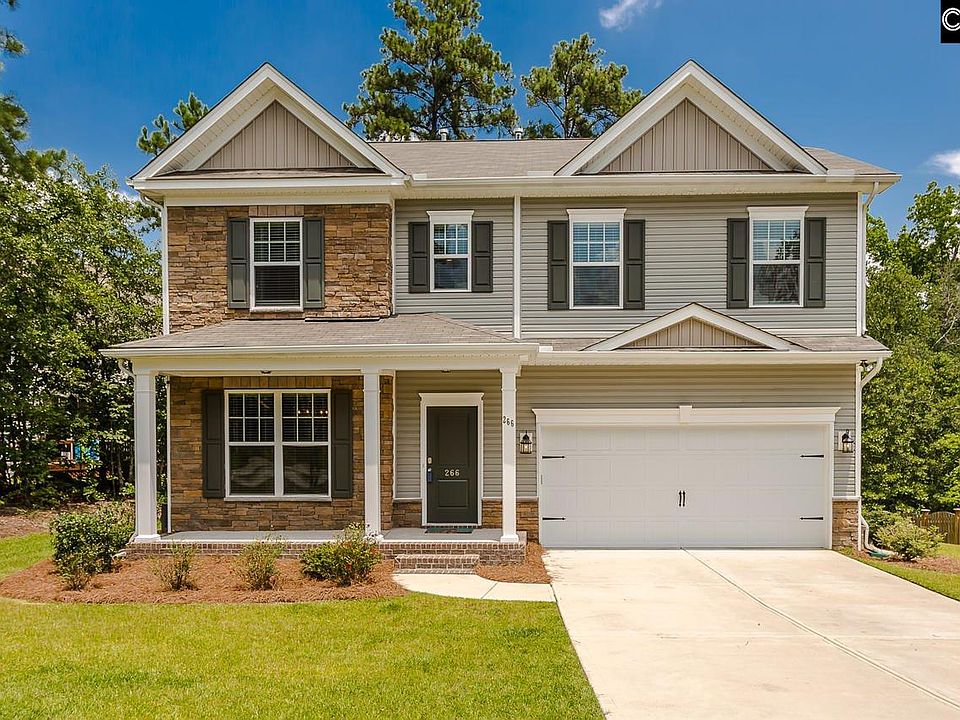 Desirable Portsmouth plan! 4BR, 2.5BA. Granite countertops in kitchen and full baths, hardwood floors, nice trim, open kitchen layout with bar. Beautiful family room with fireplace. Upscale kitchen has gas range and stainless appliances. Master bedroom has sitting room and two walk-in closets. Ceiling fans in all living areas and bedrooms. Nice deck overlooking woods. End lot with trees surrounding the left side yard and backyard. Professionally painted to prepare for new owners. Blinds professionally installed. Upgraded gutters and gutter guards. Tankless water heater so you never run out! Built to eBuilt energy efficient features. Convenient to Interstates, shopping, & military bases! Award winning neighborhood and Richland 2 schools.