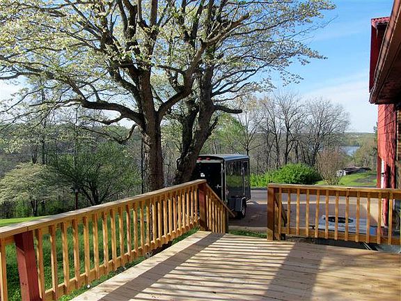 View of Lake Barkley from back deck. Within 5 min. of boat launch. Numerous upgrades in this spacious home. Beautiful dogwood trees-large LR w/bay window, separate DR off eat-in kitchen. New appliances & flooring in kitchen. Nice Master BR w/upgraded BA. Den w/hearth & woodstove, sliding doors open onto patio area. Upgraded BA & laundry room w/utility sink off of den.