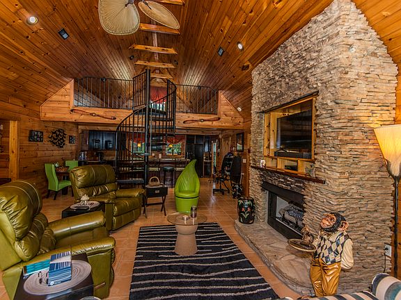 Opportunities like this don't come around often. A true log cabin in the heart of Moncks Corner. This property sits on over 7 acres of beautifully wooded land. Driving up to the home you'll be awed by the beauty of it surrounded by trees and green grass! The owner had a wrap around patio with gas tiki torches put in to be able to enjoy all aspects of this home, from the pond view to the tiki bar to the hot tub to the outdoor shower! The home is an open floor plan with a great room and a split bedroom plan. The great room has soaring ceilings with a stone fireplace showcasing the height. The kitchen boasts granite counters and wood cabinets. The 2 spare bedrooms are to the left and the huge master is to the right. Up the spiral stairs is a loft. Pictures just don't do this home justice!