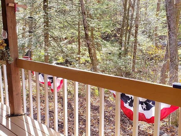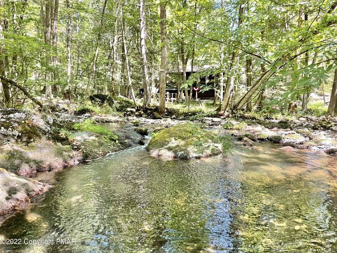 Offer accepted, pending EMD to change status. You will find optimal peace and tranquility on this 115 foot babbling creek front cabin! Marshalls creek has a two part split right off the back yard where you can lounge in your hammock, pull up a cozy chair and catch up on some reading or simply set up a BBQ! Two fire pit area to choose from. One over the bridge, then over to the split of the creek and the other off the back porch! Not only does the porch offers privacy but a hot tub to soak in the full natural environment! What could beat this! A log home designed w an authentic Native American theme, Including a wall hanging of the local Delaware river Indian Chief who grazed the area! Being offered fully furnished. This is an active short term rental.
