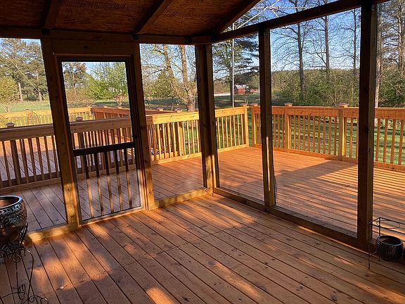 Country lovers ideal 3 bedroom 3 bath 1 story custom built all brick exterior home on 3.41 treed acres with 2,246 square feet of living space. Two separated ten feet high 400 square feet stained wooden decks each with custom made wooden benches, twenty (20) decorative railing solar night lights, electrical outlets and fully enclosed with lattice featuring vinyl construction which is both impact and weather resistant. 160 square feet private screened porch off master bedroom with decorative ceiling fan and electrical outlet. 200 square feet concrete patio. Quarter acre stocked pond. Central forced air. Anderson windows. Upgraded storm doors front and rear. Exterior electrical outlets front and rear. Assortment of fruit trees and grape vines. Beautifully landscaped all around. . Attached two car garage with 80 feet of storage space and rear entrance. Garage door opener. County water interior. Well water exterior. Gravel driveway. Exterior security lighting, dusk to dawn and motion, front and rear. Gutters. Interior features include custom built book and display shelves. Wood burning fireplace with mantel and blower in family room. Propane fireplace with mantel in living room. Upgrades throughout including hardwood flooring and tile flooring. Ceiling fans throughout, upgraded ceiling lighting, custom window treatment. Separate 400 square feet raised deck with porch off master bedroom. Inside laundry, kitchen with dishwasher, recessed lighting, solid wood cabinets, breakfast bar, hardwood floor, stainless steel sink with sprayer, refrigerator and three year old water heater. Guest bath has tub, shower and double vanity. ADT Security.