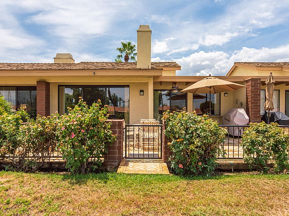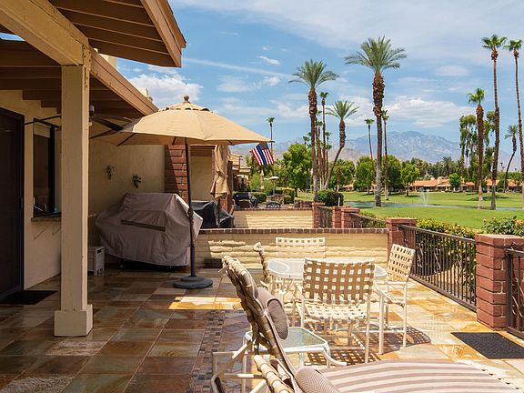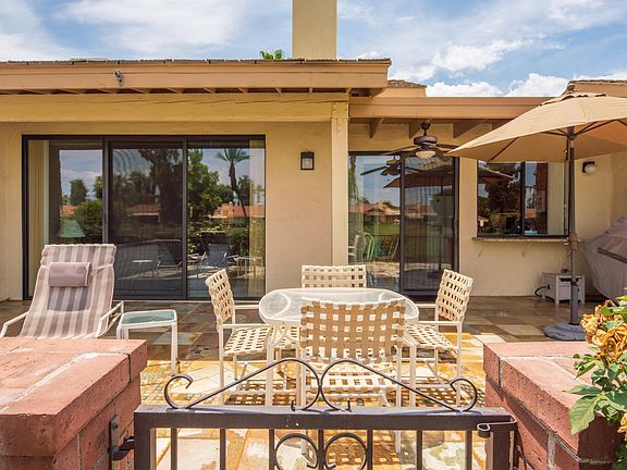 This is a beautiful, 2-bedroom, 2 bath condominium located in Monterey Country Club in Palm Desert, California. The condo features an open floor plan with a stunning view of the golf course. The moment you enter the gated courtyard you feel like you're on vacation! The front porch and entry welcome you with custom tile. The kitchen is light and bright and has granite countertops. The atrium was converted to an office with a desk built in. There are 37 community pools in Monterey Country Club, 27 holes of championship golf, a recently renovated fitness center, full-service clubhouse, pickleball, bocce ball and tennis courts. Monterey Country Club is centrally located and a short drive to the Indian Wells Tennis Garden, home to the BNP Paribas Open; and the Empire Polo Club, home to the Coachella Valley Music and Arts Festival and the Stagecoach Festival. Welcome Home!