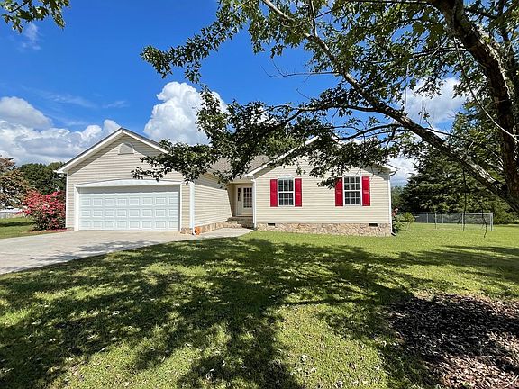Nice Ranch home on 2.14 acres! Home features 3 bedrooms, 2 full bathrooms, spacious living room with gas log fireplace, kitchen, formal dining room, sunroom with HVAC (could be used as an office, bonus room, etc.), laundry room (washer and dryer), and nice laminate flooring. All new paint throughout, 2 car garage, and back deck with gazebo. Awesome 2.14-acre lot, all level, a large portion is fenced with chain link fence, beautiful trees, and 12' x 12' outbuilding.
