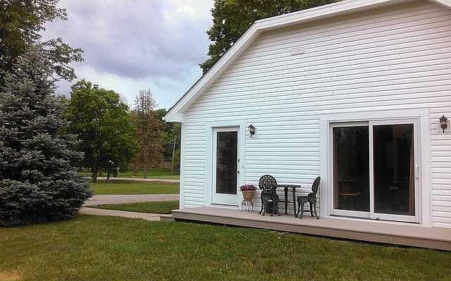 BACK ON THE MARKET! Renovated ranch on 1 acre lot! Cathedral ceiling in living room with gas fireplace. Updated fully equipped eat-in kitchen with all black Whirlpool appliances, 2 skylights and Pella wood sliding door to the deck overlooking the large private lot! Master suite with 9' ceiling and extra large double closet, Updated bath w/ whirlpool tub, walk-in shower & skylight. You'll love the 2-car detached garage with finished second level with full bath! Perfect office or additional living quarters! Water, electric and heating included! Come see this private get-away!