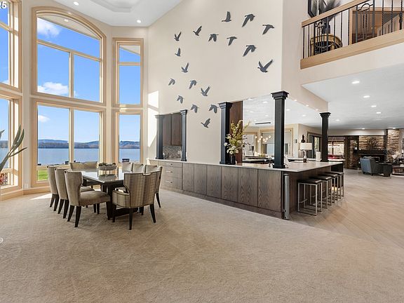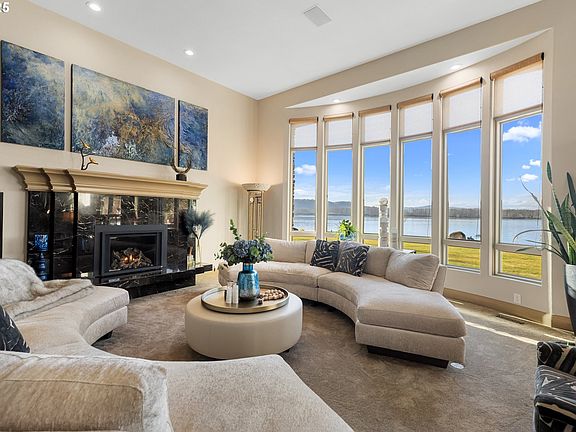 This stunning waterfront estate is a rare opportunity, offering 16.75 acres of ultimate privacy, surrounded by water on three sides. With over 1,000 feet of sandy Columbia River beach, this property delivers breathtaking views from nearly every room. A charming boardwalk leads to your private 80-foot boat dock, perfect for all your water adventures. The completely remodeled open kitchen is a chef’s paradise, featuring quartz countertops, three ovens, and every detail is designed for entertaining or everyday luxury. Outside, a riverfront gazebo is a dream venue for hosting with its full kitchen and the option to enclose. Gas fire pit, playground, bocci ball and more. The primary suite is a serene retreat you’ll never want to leave, designed with ultimate comfort in mind. And for car enthusiasts, the estate boasts garage parking for at least 10 cars, plus space for an RV. This is more than a home—it’s an extraordinary lifestyle.