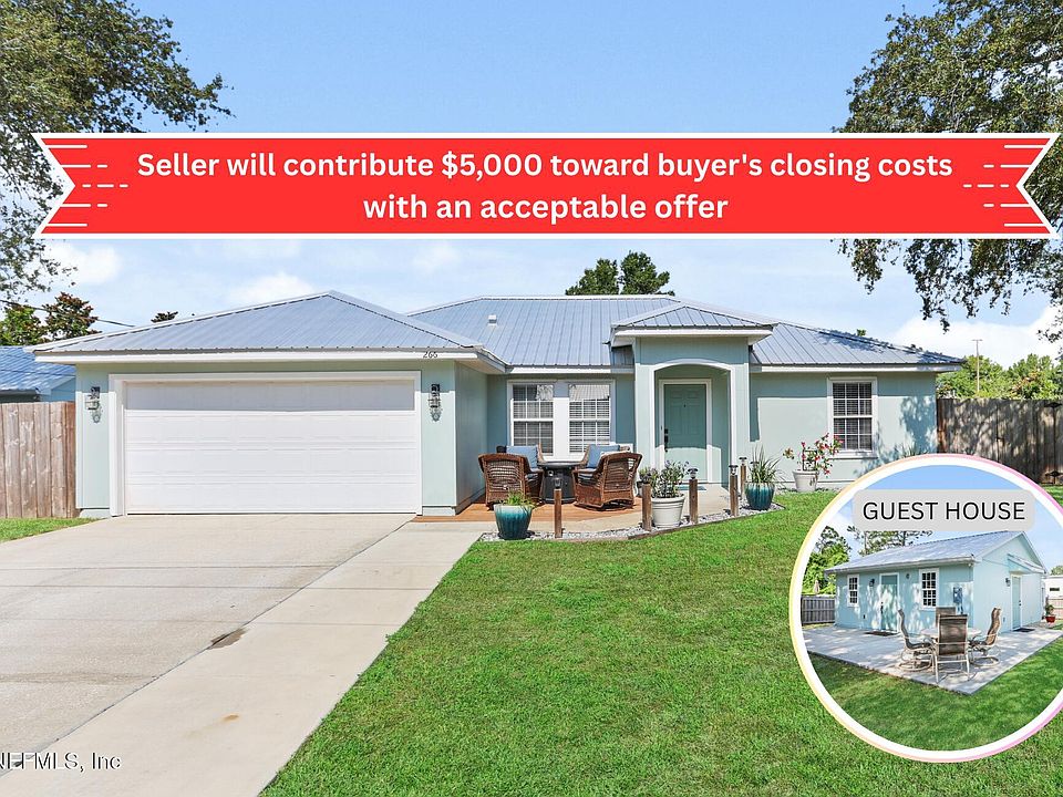 Seller pays $5K toward closing costs w/ acceptable offer. On the market after Buyers financing fell through! Recent appraisal and home inspection were solid - this home is ready for it's next buyer. 3 bedroom 2 Bath with GUESTHOUSE in the coveted Saint Augustine South neighborhood! Conveniently located near the US 1 shopping corridor, this property is just a quick ride away from the beach and the historic downtown district. This sought-after neighborhood boasts two boat ramps, a park/ playground, and proximity to everything you need, with just a 10-minute drive to the beach The main house features an open-split floor plan with 3 bedrooms and 2 bathrooms, plus a bonus room/ Fl room. Extensive updates include a new split wall AC in the Florida room (2024), a new AC unit (2020), a new roof (2022), a new water heater (2023), and new ceiling fans (2024). The kitchen appliances, including the stove, dishwasher, and microwave, were all replaced in 2024. Both bathrooms were upgraded in 2023.