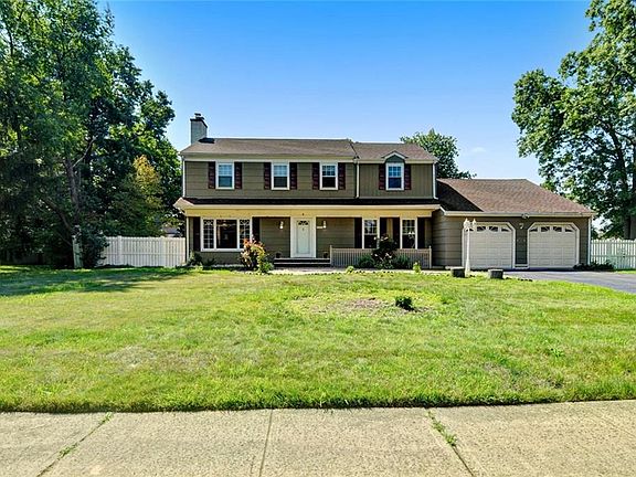 CENTER HALL Colonial FACING NORTH,OPEN FLOOR PLAN WITH A BEDROOM ON THE 1ST FL WITH A FULL BATHROOM HW floors LIVING ROOM AND KITCHEN HAVE SLIDING DOORS TO YOUR 2 TIER DECK 3 FULL UPDATED bathrooms, large bedrooms, master suite w/ attached bath & A walk in closet, FULL BASEMENT PARTIALLY FINISHED 2 CAR GARAGE located close to shopping, schools, park, highways