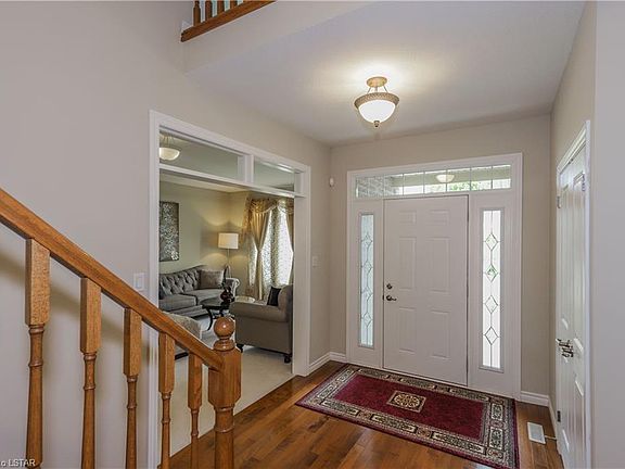 Executive 5 bedroom home nestled on premium North London's Upland area. Beautiful covered front entrance, impressive 2 storey foyer (21.06 x 10.6) with rich hardwood floor and staircase. Family room with lots of natural light, has an impressive Gas fireplace. Access to large back deck and back yard through sliding doors from huge buffet area. Huge gourmet kitchens,( the KITCHEN 14 x 7.10 is an eating area) granite counter tops, walk in pantry, tiled backsplash. Main floor Living, Dining Room. Large Master bedroom with 4 piece Luxury Ensuite with huge walk in closet plus 4 bedrooms on second floor. Bedroom no. 3 has attached Ensuite. Good condition and quality finishes throughout. Unspoiled lower level with bathroom rough in. Close to Jack Chambers School, University Hospital, Western University, Masonville Mall and lots of other amenities.