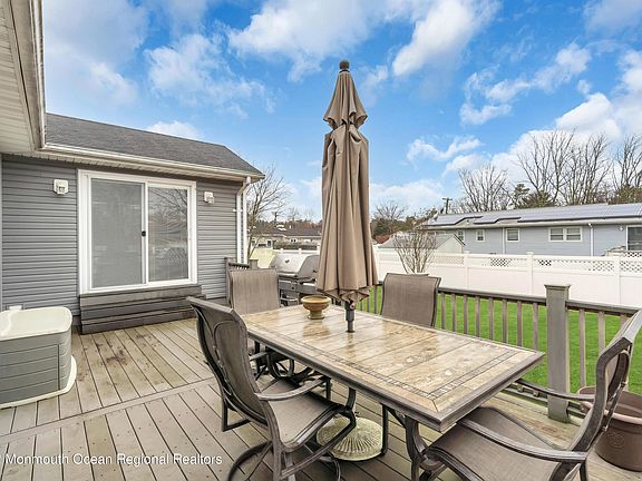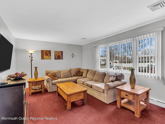 Heres your chance to move in the very sought after ''Lake Rivera'' section of Brick! This oversized ranch with finish basement and 2 car Garage is just what a growing family needs! The lot is 120X120 so you have so many options for your fenced in back yard! Home also come with Solar Panels that are owned . . Home also has Hardwood floors under carpeting throughout. The Family / office could be a 3rd Bedroom. This home has Large sized bedrooms and solid wood cabinets in the kitchen! This home just needs a family to move in and start enjoying the neighborhood!