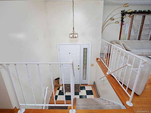 Location plus! Prime East Meriden Raised Ranch on a quiet cul-de-sac! This meticulously maintained home has many fabulous features: open floor plan with hardwood floors throughout the majority of the upper level and plenty of space for entertaining for today's active lifestyles. The formal living room is bright and light and flows directly into the formal dining room or eat in kitchen. The formal dining room leads to the spacious deck for additional dining and relaxing space.All 3 bedrooms are on the same floor with newer windows. The Master bedroom has a half bath for convenience. The full bath on the main/upper level is spacious and located in the hallway. There is an additional 450 sq feet in the lower level that is completely tiled and boasts a brick mantle with a wood burning fireplace The laundry room is accessed inside the large full bath with a beautiful updated walk in shower. The over sized 2 car garage has loads of storage and a workshop area. Pride of ownership shines throughout this spotless home. The backyard is fully fenced, has a covered stone patio area and an additional concrete patio with fire pit for entertaining and relaxing. Additional bonus - dedicated garden area as well as a good sized shed for storage. There is a working whole house alarm system in place. Underground utilities and Central Air! Each room is individually zoned! Conveniently located to shops, stores, Rt 15- Merritt Parkway and I-91!