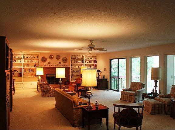 A huge house for the price. The house sits on almost .9 acres in a beautiful wooded quiet area. The very large great room features a fireplace, built in shelving and wet bar and opens to a sunny Carolina Room and outside deck. Really bright and airy! Large first floor master BR; kitchen features pass thru eating area to breakfast nook. The 2nd floor contains 2 large BR's, full bath and huge
