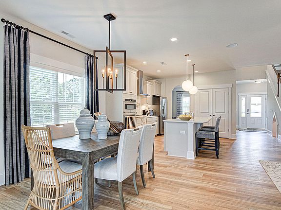 The two-story Nantahala plan features four bedrooms and two-and-one-half bathrooms. Enter the two-story foyer to be greeted by a flex space with arched entry on your left. Continue through the flex space in to the kitchen and eat-in that overlooks the family room. An island with overhang and cabinets provides extra sitting and storage area. The primary suite is located on the first floor and features a large walk-in closet for ample storage space. A laundry room, powder room, and coat closet complete the first floor. A loft space is located on the second floor along with three secondary bedrooms, a hall bathroom, and linen closet. Additional options for the Nantahala include an office or formal dining room in lieu of the flex space, a pet pad, a sunroom off of the family room, and more.