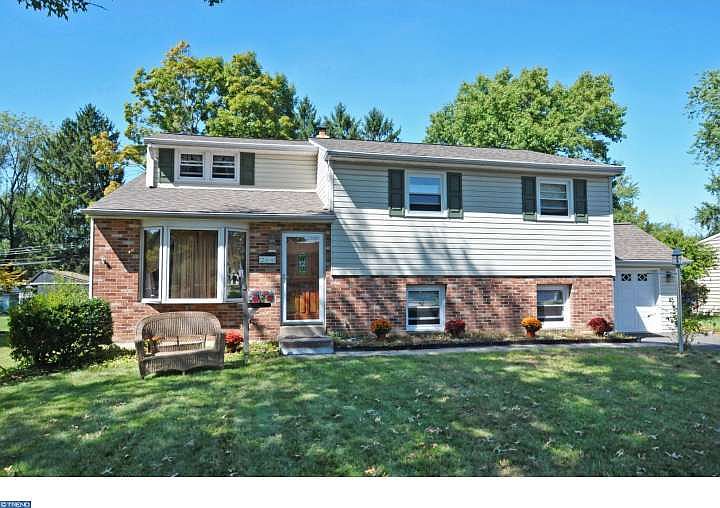 Beautiful Brick & vinyl sided Split Colonial Features Custom front door to Living room with large bay window and glistening hardwood floors that continue into the Dining room. Living room & dining room with large half wall offers open 1st floor concept. Dining room with Anderson slider to large 24x16 pressure treated deck. Kitchen features solid oak cathedral cabinetry, recessed lighting, ceramic tile floor, gas range with overhead microwave & built in dishwasher, corner ss under-mount sink. Oak stairs from the living room leads to 3 bedrooms all with hardwood floors, ceiling fans with lighting and upgraded colonial doors. Hall bath features custom ceramic tile floors and walls custom vanity with granite counter tops and bath shower combination. 4th bedroom addition features cathedral ceiling fan and wall to wall carpeting. Lower level family room off kitchen features mid pile wall to wall carpeting two double hung front windows and custom built in shelving .Large utility room/laundry room with built in sink and solid white wall cabinetry. Beautifully remodeled powder room and etched stained glass door to 15x12 concrete patio. Above ground pool and large double storage shed. Newer Heater and central air, windows, roof and vinyl siding. Impeccable condition large paved driveway accommodating 6 cars.