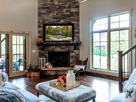 Exquisite custom home built by Mike Ward Custom Construction is located just a golf cart path from Norris Lake. Seasonal lake views and a path to Twin Cove Marina offers lake access with mountain views. The home features a master on the main and open concept living space accented by a beautiful fireplace and beams that make this elegant home feel right at home in this lake/mountain setting. The outdoor entertaining space is anchored by the spacious covered porch and wrap around deck offers access to outdoors from master and kitchen/dining area. The garage is spacious and offers space to park 4 cars or a large boat and a few cars. Enjoy lake living with out the worries of lakefront maintenance. The marina is just minutes away and I 75 is 5 minutes from your door.